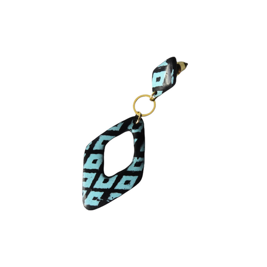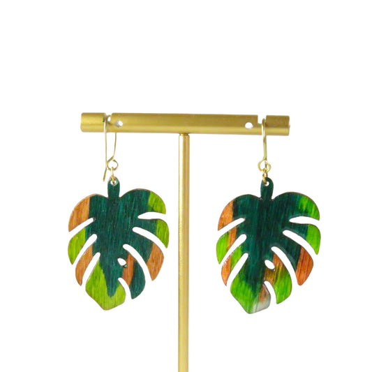 Pendientes de madera en forma de hoja de palma pintados con tinta